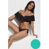 Бесшовный купальный бюстгальтер с глубоким вырезом и заниженной перемычкой визуально увеличивает грудь без пуш-ап.