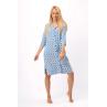 Сорочка имеет круглый вырез горловины, короткий рукав, ассиметричный низ.