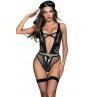 Комплект виконаний з сітки та шкіри. Боді на шнурівці, зшито